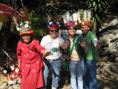 We had to climb the stairs, but my parents and aunt opted to enjoy the view from below. so with my sister and brother, we hiked up and well looked at the grotto. WE stopped by to check souvenir stalls at the landing where a "kindly" old lady told us to wear their native headdress and make a pose so somebody could take our picture, she posed with us. We were all up for it, until the picture was taken and she asked us to pay Php50 for the picture. Seriously??? Anyway, we paid.